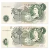 Two Rare Bank of England error £1 banknotes, Consecutive Prefix CN41 ‘Paper Jam’ error. You can see the error getting worse from the lower number to the higher.