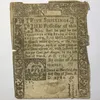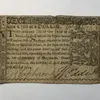 Two Early American Banknotes. Continental, Massachusetts 1780 Twenty Dollar Note, Printed by Hall & Sellers. Approximately 9.2cm x 7cm. Condition, creases, staining. Discontinued Hole to right of cent…