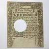 Connecticut 1784 Forty Shilling Note, New London, Printed by Tim Green. Approximately 7cm x 9cm. Condition, creases, staining. Discontinued Hole to centre.