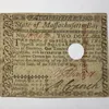 Maryland 1775 One Dollar Note, City of Annapolis, Printed by F. Green Approximately 9cm x 8cm. Condition, creases, staining.