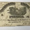 Confederate States of America Civil War, Richmond $100 Banknote. Dated August 8th 1962, with two stamps to reverse dated 1864 & 1865.
