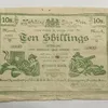 Scarce 1900 Mafeking Siege 10 Shilling Note, uneven cut approximately 16cm x 12cm. Condition, folded, creases, small tears to edge with small fragments missing.