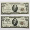 Two American National Currency Series of 1929 $10 notes for Central United National Bank of Cleveland & First National Bank of Seattle.