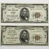 American National Currency Series of 1929 $5 Notes of The Federal Reserve Bank of Boston and Terre Haute.
