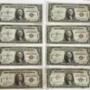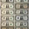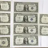 US Series 1934-F $1 Silver Certificates in two serial number runs of conservative small runs of 3 x twos and 1 x three with 4 Series 1957 and 1957-B.