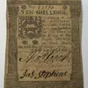 Pennsylvania, Philadelphia 1775 Nine Pence Note, printed by Hall and Sellers. 7.3cm x 5.9cm. Condition, creases, staining and what looks to be glue mark at the top on the reverse.