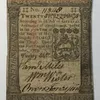 Pennsylvania 1773 Twenty Shilling Note, printed by Hall and Sellers. 9cm x 7cm. Condition, folded & staining.