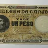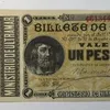 Scarce Puerto Rican 1885 One Peso Banknote missing Counterfoil, Approximately 10.8cm x 6.7cm (unevenly cut) Black on Yellow underprint.