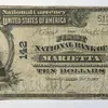 US National Currency Note, Series of 1902, First National Bank of Terre Haute, Indiana, $10, dated September 15th 1905.