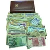 A leather wallet full of world banknotes containing over 100 banknotes, mostly heavily worn condition