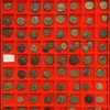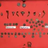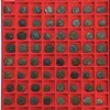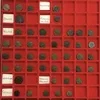 Large collection of Roman Coins & Artefacts in wooden display case.
