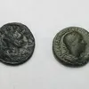 Two Coins of the Roman Empire of Gordian Silver Antoninianus and Probus AE3 Bronze Alloy Coin in Plastic Presentation Cards.