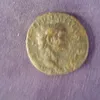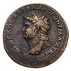 An 81-96AD Roman Domitian coin with head in a crown of laurels and the reverse Mars holding Victory and Trophy; with the initials SC