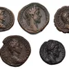 Roman coin Marcus Aurelius Sestertius bronze together with another Roman coin, an ancient coin,