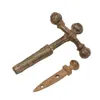 Rare Roman Bronze Knife End in the form of Mars god of War, Approximately 5cm tall and 2cm wide.