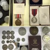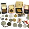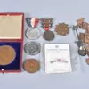A collection of medals, medallions and crowns, including WWII and 1937, coronation medal in an Anglo Indian box