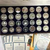 Rare Silver Conservation Collection by the Royal Mint sold by Spink, 24 Sterling Silver Commemorative Proof Coins from around the world of the Large 42mm Type in Original Display Box with full Certifi…