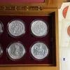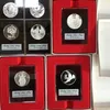 Sterling Silver Medallic Set of the Kings and Queens of England contains 43 medals of 39.1g each of hallmarked Sterling Silver, 1681g total.