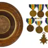 A WW1 Bronze Memorial Plaque, named to Walter Bushell, housed in a purpose built mixed wood frame, Notes: the CWGC website names 3 men named Walter Bushell who died during WW1, but 2 of them also have…