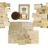 World War I memorial bronze memorial plaque or ‘death penny’, commemorating James William Hough. Together with its original card envelope of issue, and its condolence slip. Plus, a small quantity of W…