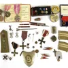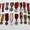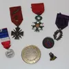 A group of French medals and badges from the same family to include the WWI Legion of Honour, the Croix de Geurre with palm and stars, the Academic Order of Palms, a large silver gilt General Society …