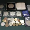 A collection of coins and Coronation Medal including:- A 1902 Coronation Bronze boxed "Edward VII coronation medal, A George III Silver crown in silver setting with rotating coin converted to a circul…