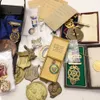 Collection of repro WW1 Victory Medals of Siam, Japan & Belgium, Two WW2 American Victory Medals one Army the other Marine, Duke of Connaught Commemorative Medal, 1915 Sailors Society Cross (in Nelson…
