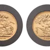 Unusual Platinum-22ct Gold Alloy Coins, Full Sovereign, Half Sovereign, Quarter Sovereign and One-Eighth Sovereign. Commemorating the Platinum Jubilee, the Alloy is 22ct gold with 2ct of Platinum.