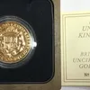 Scarce Elizabeth II 1989 Gold Brilliant Uncirculated Five Pound Coin. In Original Case, Commemorating the 500th anniversary of the Sovereign.