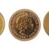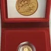 A modern Elizabeth II gold proof quarter sovereign