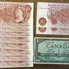 Bank of England Fforde 10 Shilling Banknotes with one 1954 Canadian One Dollar Banknote, Prefix Run of 8 with a gap of 2 and two more in that run.