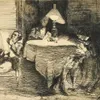 James Abbott McNeill Whistler(American, 1834-1903)Woman in tall bonnet and a man in a top hat