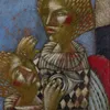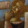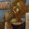 ALEXANDER GERASIMOV (LATVIAN, B. 1955) — Figure against blue background signed in cyrillic (lower left), dated '2007' and inscribed (on the stretcher) oil and mixed media on canvas 60 x 50cm ARR