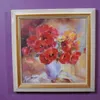 Two 21st Century oil and print on canvas of still life flowers by Russian artist Anna Razumovskaya, signed with authenticity, 75cm x 75xm, 60cm x 60cm.