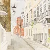 Barbara Dorf, (1933-2016) watercolour, 'Courtyard, Rome', Christmas Exhibition 1977, old paper label