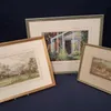 Barbara Lady Brassey; Two stags. Pencil and acrylic on paper, signed and framed, 12cm x 16.5cm. C J Thornton, cow laying down by barn, watercolour on paper, signed and framed 17cm x 26cm and Alan Oliv…