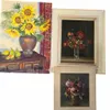 Three still life paintings of flowers. A framed oil on canvas of Stock by C.H. Bennett - small loss to the paint surface. 58cm x 48cm frame inclusive. An unframed canvas on board of Sunflowers. 66cm x…