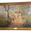 A large oil on canvas gilt framed. "Gone fishing"for Margo and Peter. Signed Nevin. 99cm x 150cm.