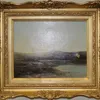 Charles Leslie ( British 1839-1886) Cattle watering in an extensive river landscape, figures on the far bank. Oil on canvas, signed lower left, 22 x 29cm