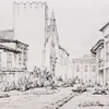 George Chinnery(London 1774-1852 Macau)A study of a Macau street scene with Penha hill in the distance (recto); A study of a church and grave (verso)
