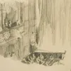 Dame Laura Knight R.A (1877-1970) 'Stratford' charcoal sketch backstage, signed and inscribed,