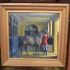 Daniel Crane (British, b. 1969), A Huntsman with his horse in the stables, oil on canvas, approx. 49.5cm x 52.5cm, signed lower left, framed, entire approx. 69cm x 72cm. ARR applies to this lot. Our v…