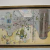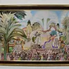 David Evans (1929-1988) large watercolour depicting landscape with monkeys in trees, person on throne and throngs of people. Size approx frame 118cm x 81cm, image size 106cm x 69cm. Signed lower left.…