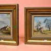 Two mid 20th Century oils on board by Derbyshire artist Digby Page of country scenes, in gilt frames, 25cm x 19cm.