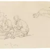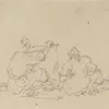A sketch of two seated boat women with a bowl and another figure study