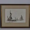 Elizabeth Mace - Sea scape with fishing boats, work on paper, watercolour, framed and glazed, W34cm x H23cm excluding the mount and frame.