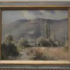 Enrique Swinburn Kirk (Chilean 1859-1929) Mountainous landscape in summer, with figures, river and mature trees. Oil on canvas, signed, lower right, 29 x 38cm