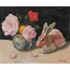 ERNEST BURNETT HOOD (SCOTTISH 1932-1988)STILL LIFE WITH ROSES AND PORCELAIN HARE