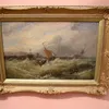Ernest William Lara (1870-1940, British); oil on canvas of a lifeboat attempting rescue from a stricken sailing ship, signed l l and gilt framed; 29cm x 44cm (42cm x 58cm including frame)