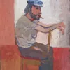 FRED YATES (BRITISH, 1922-2008) — Self portrait, seated and smoking; Landscape study (verso) oil on board 62 x 49.5cm (unframed) Provenance The Estate of the Artist